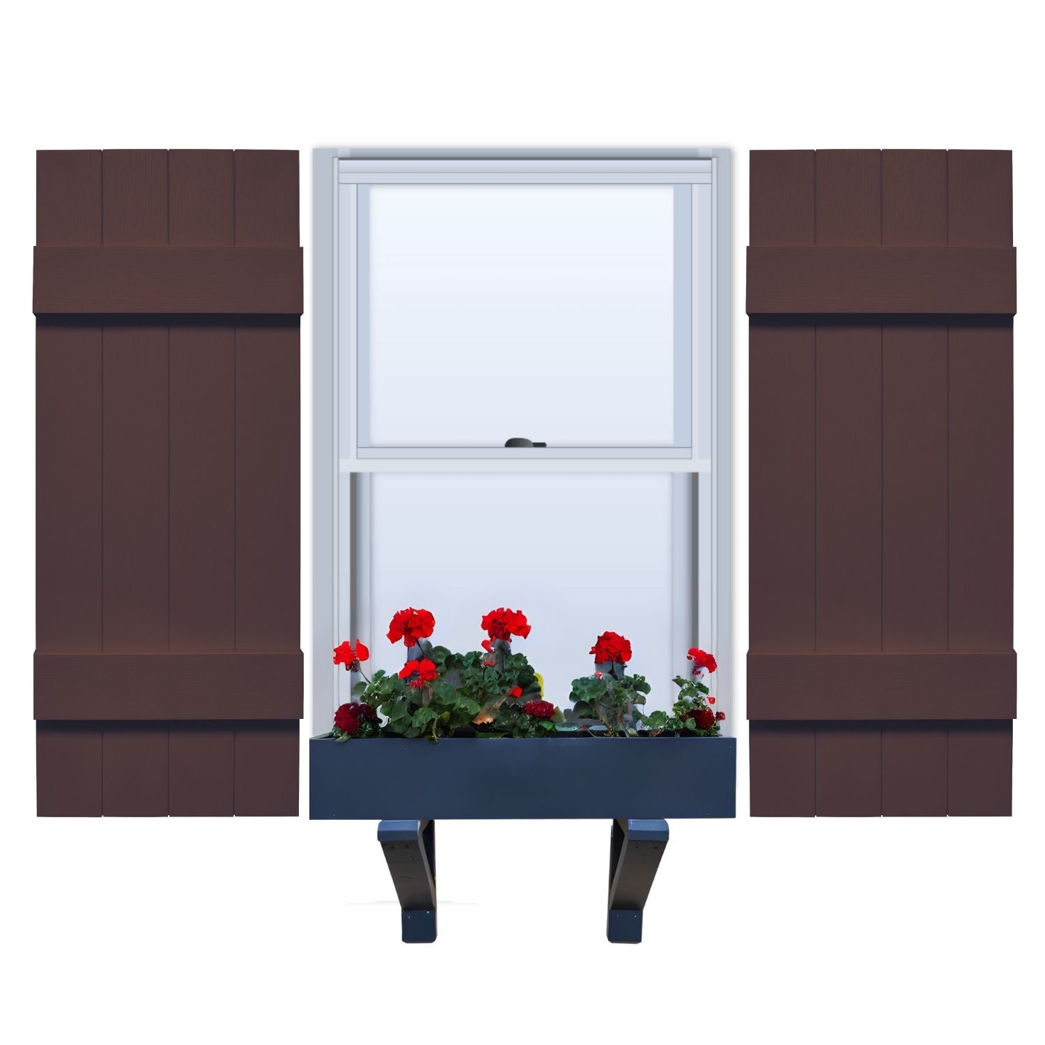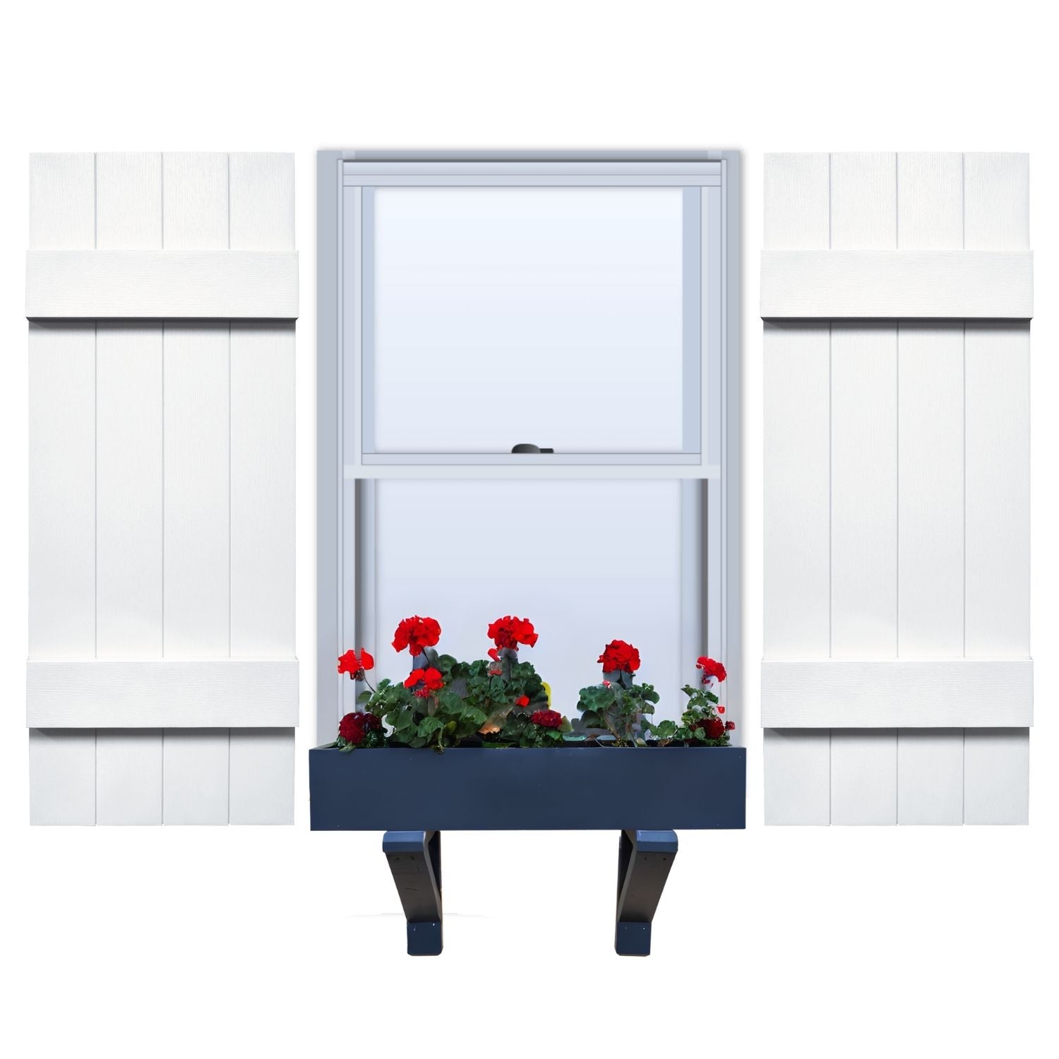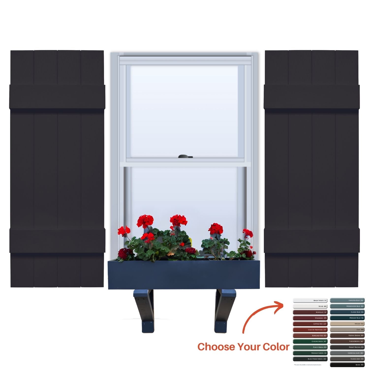 Vinyl | Joined Board & Batten Exterior Shutters | 14" Width | 4 Vertical Boards | 1 Pair