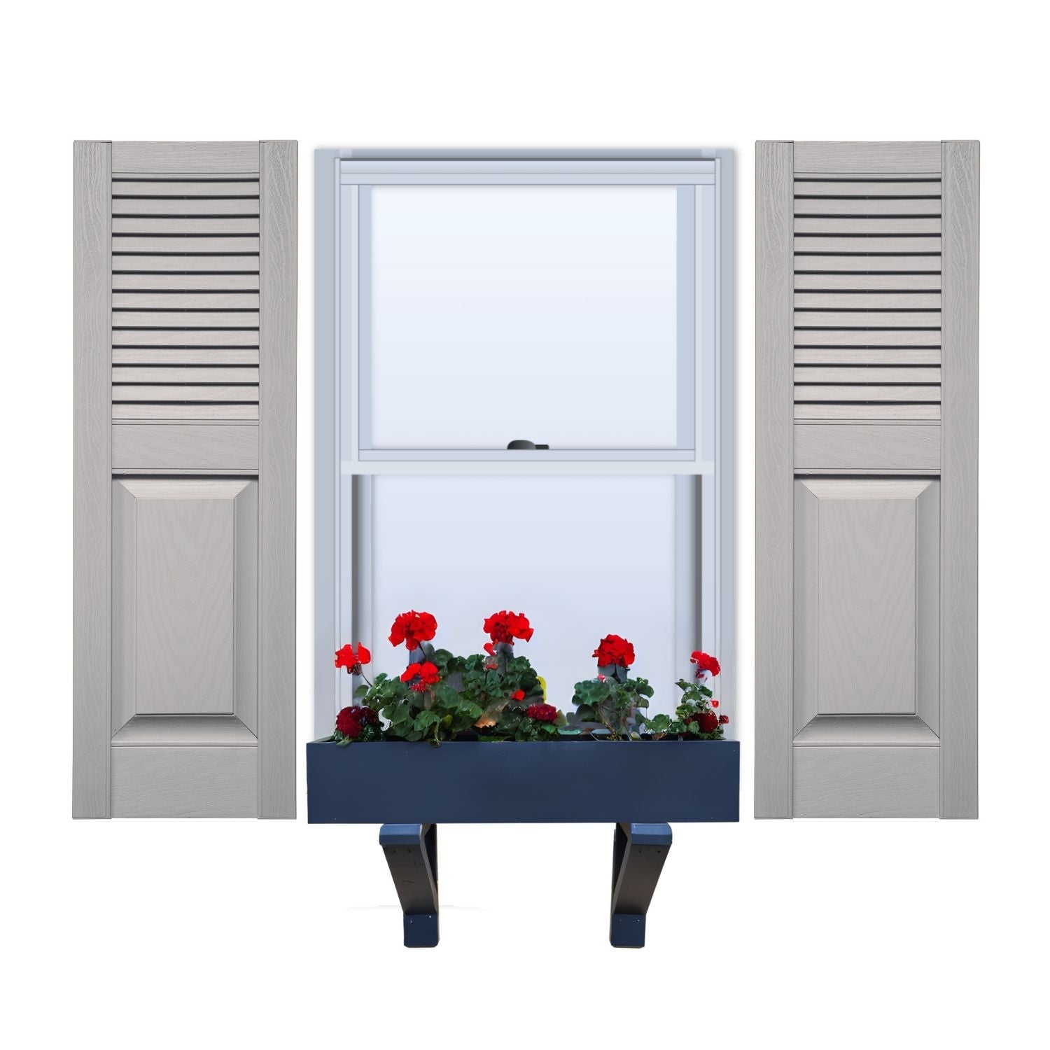 Vinyl | Louver Over Raised Panel Exterior Shutters | 16.5" Width | Straight Top | with Mid Rail (50/50 Split) | 1 Pair