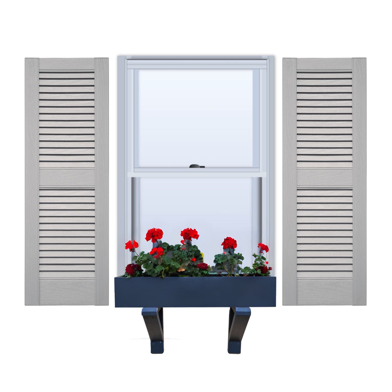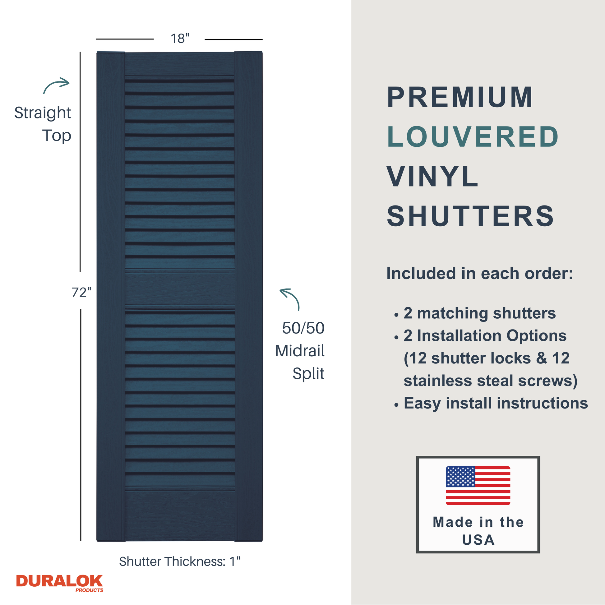 Vinyl | Louvered Exterior Shutters | 12" Width | Straight Top | with Mid Rail (50/50 Split) | 1 Pair