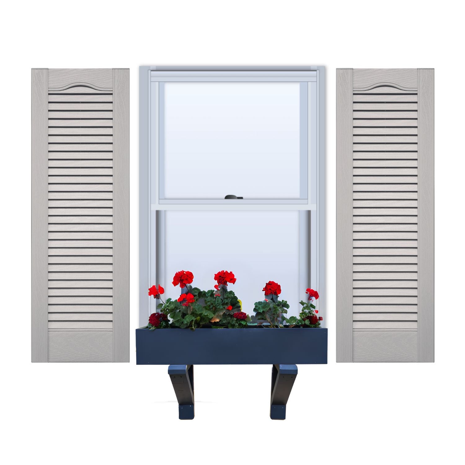 Vinyl | Louvered Exterior Shutters | 14.5" Width | Cathedral Top | No Mid Rail | 1 Pair