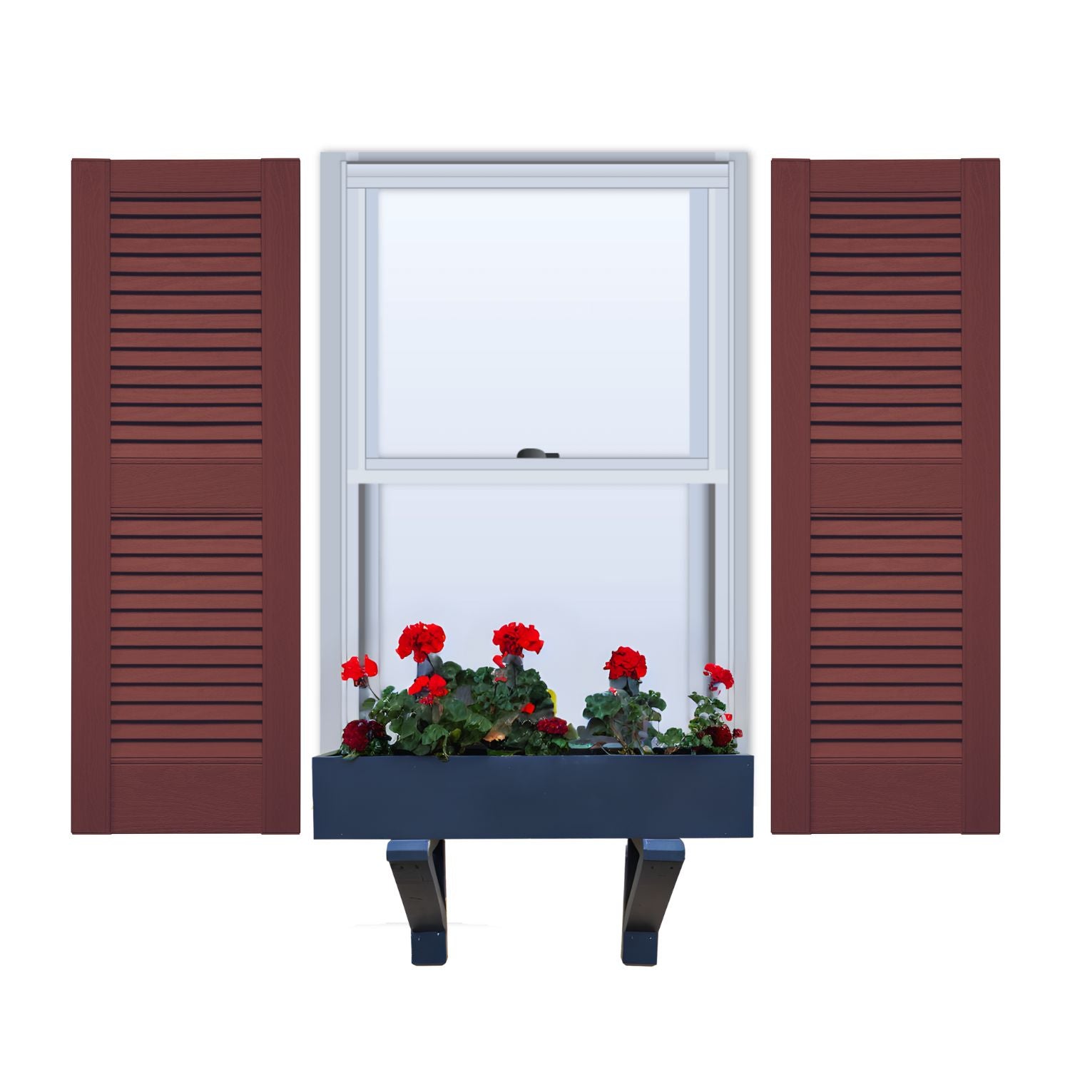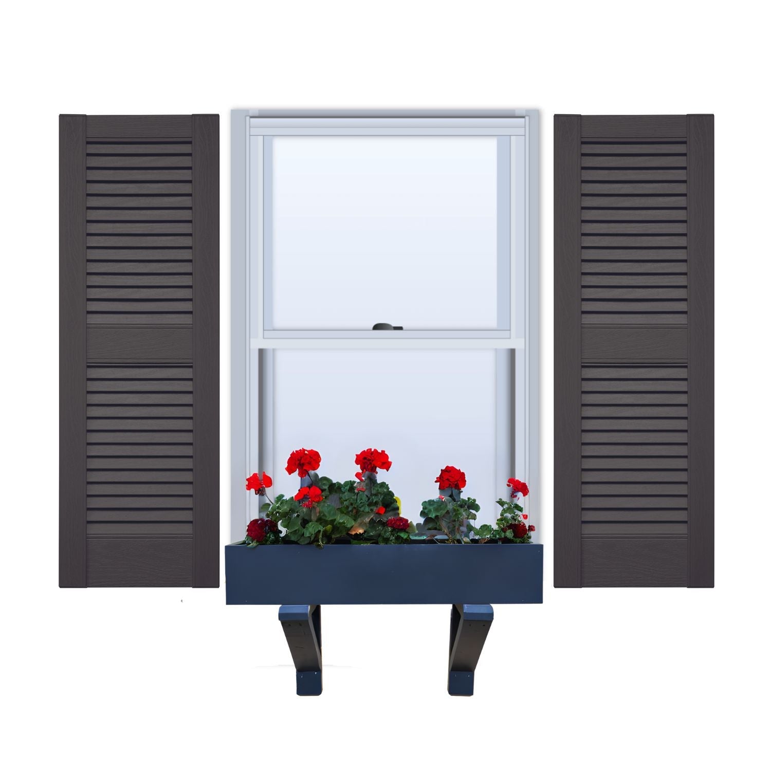 Crafted with precision, these non-functional louvered vinyl shutters boast crisp angles and sleek lines, crowned by a straight top, exuding both vertical and horizontal appeal. Their classic and clean design complements various architectural styles, making them a perfect fit for colonial, historical, and ranch-style homes.
