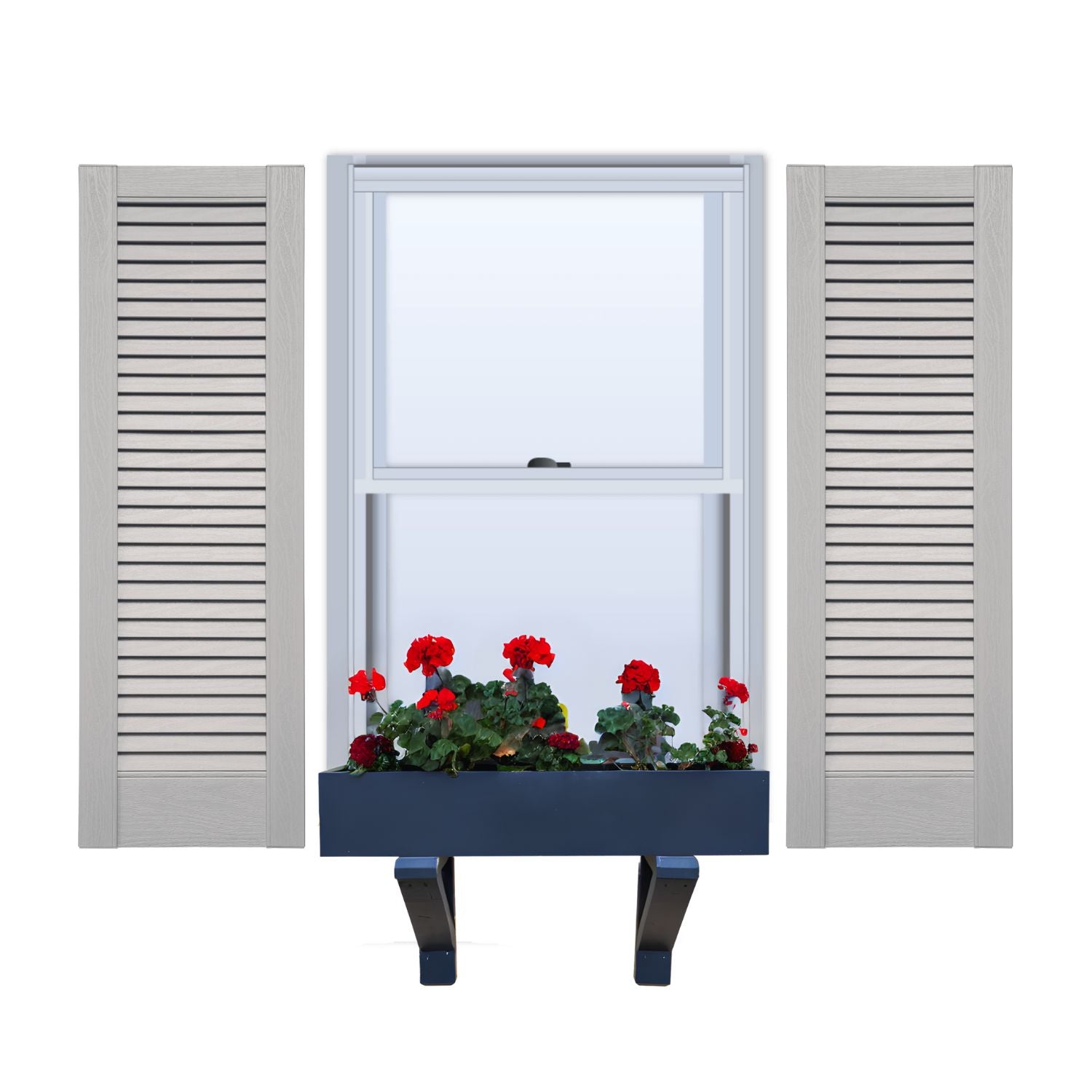 Vinyl | Louvered Exterior Shutters | 9.25" Width | Straight Top | No Mid Rail | 1 Pair